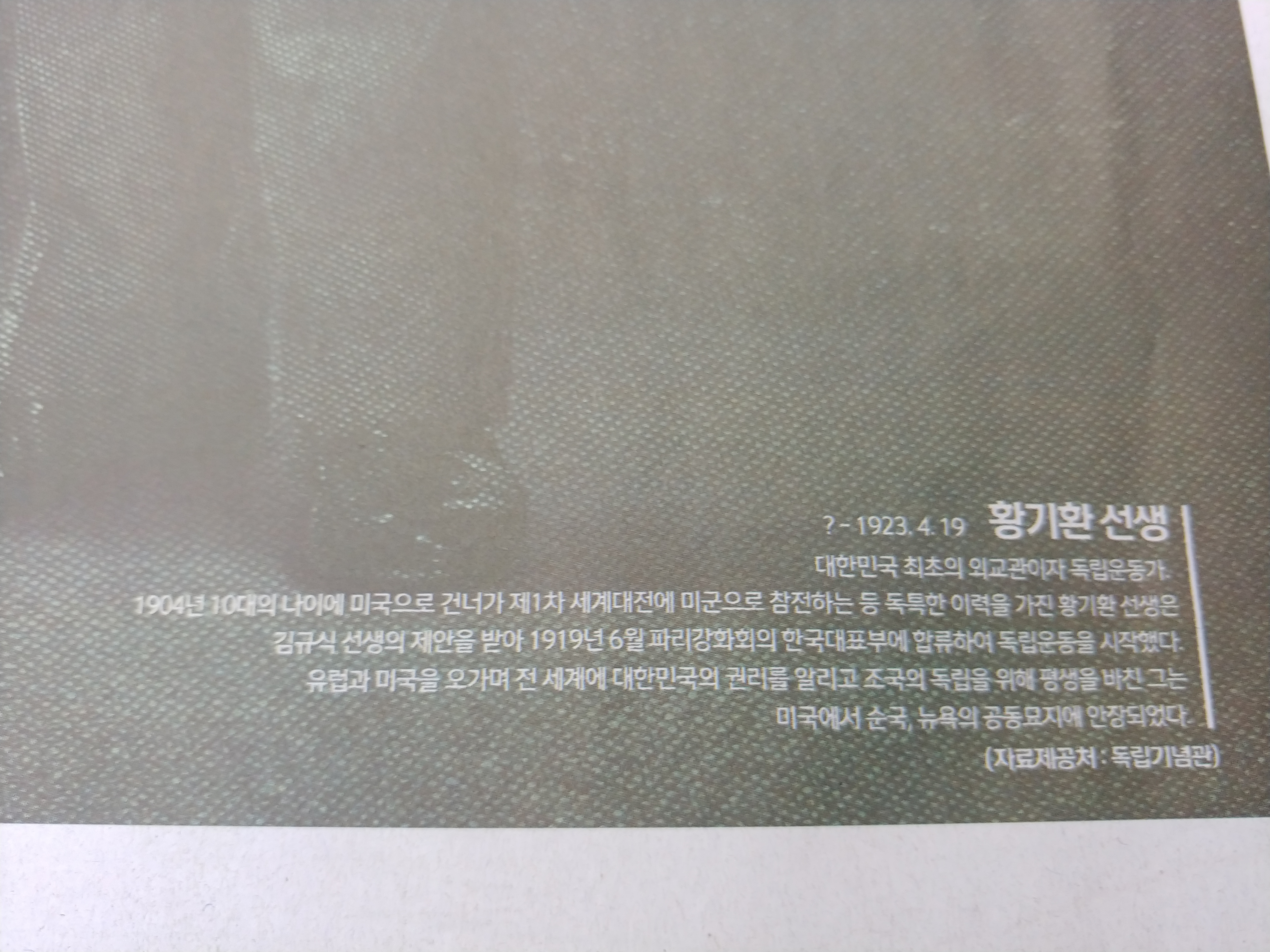 황기환 선생의 묘는 뉴욕에서 2010년 발견되었다고 합니다.